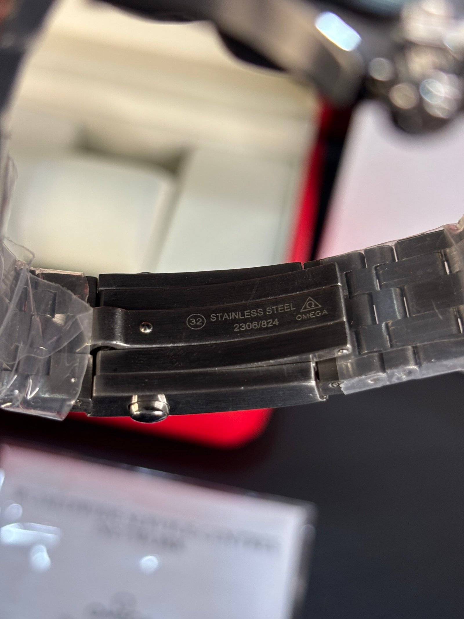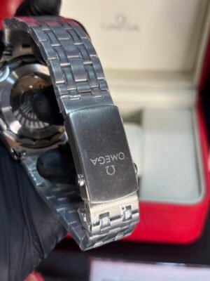 Inside, the watch is powered by the Omega Co-Axial Master Chronometer Calibre 8800, offering superior accuracy, magnetic resistance up to 15,000 gauss, and a 55-hour power reserve. A sapphire crystal case back showcases the beautifully finished movement.