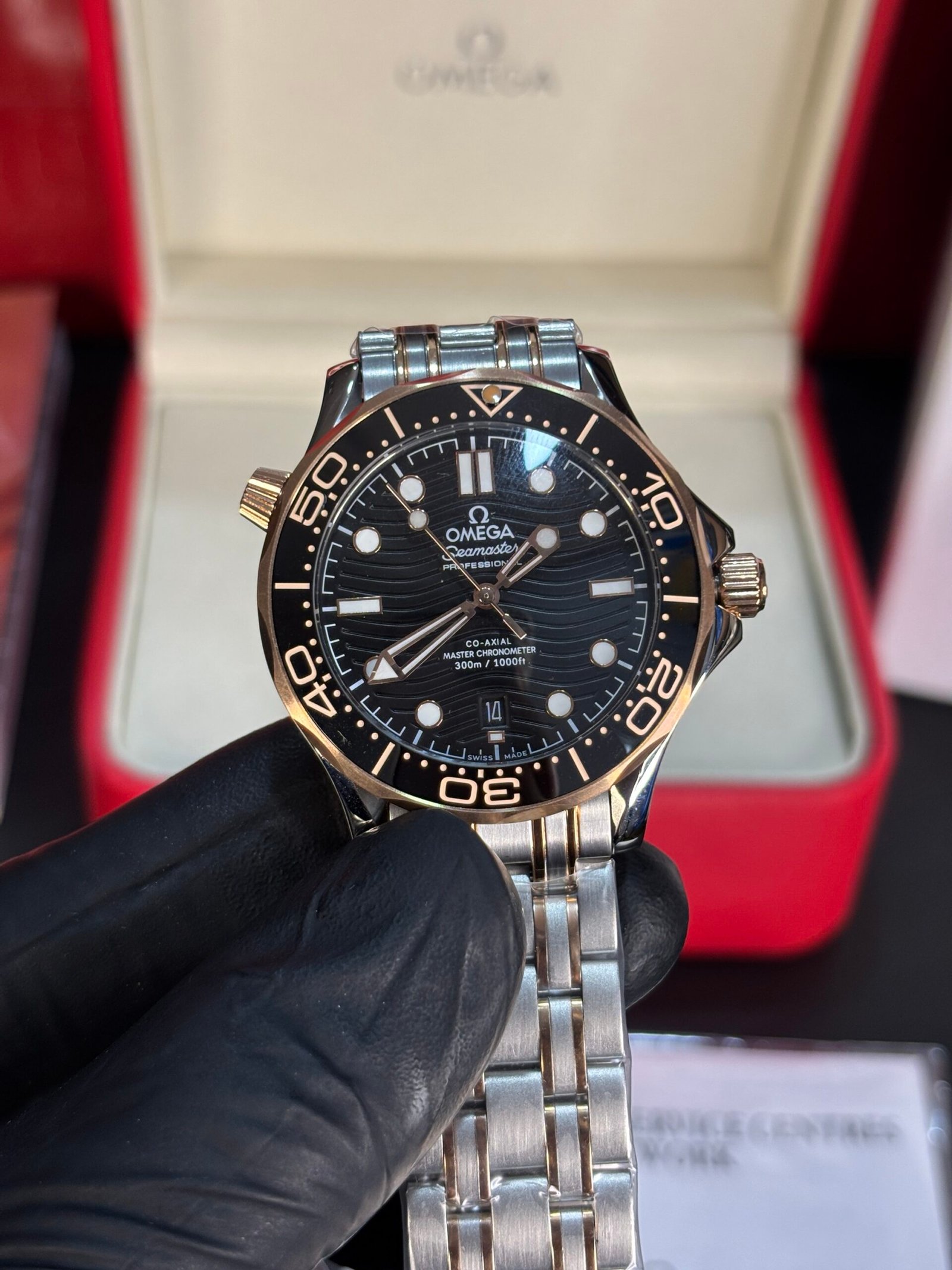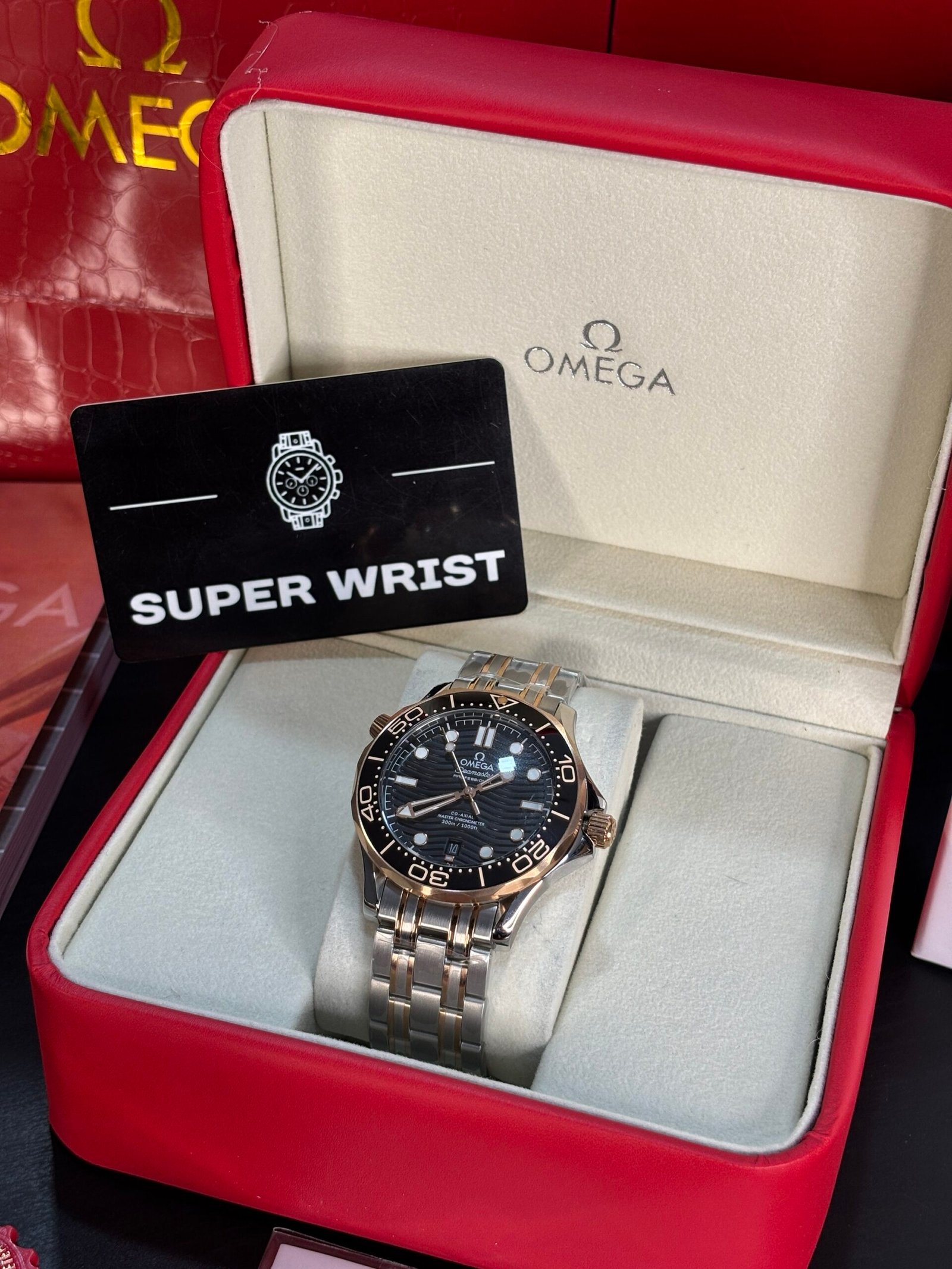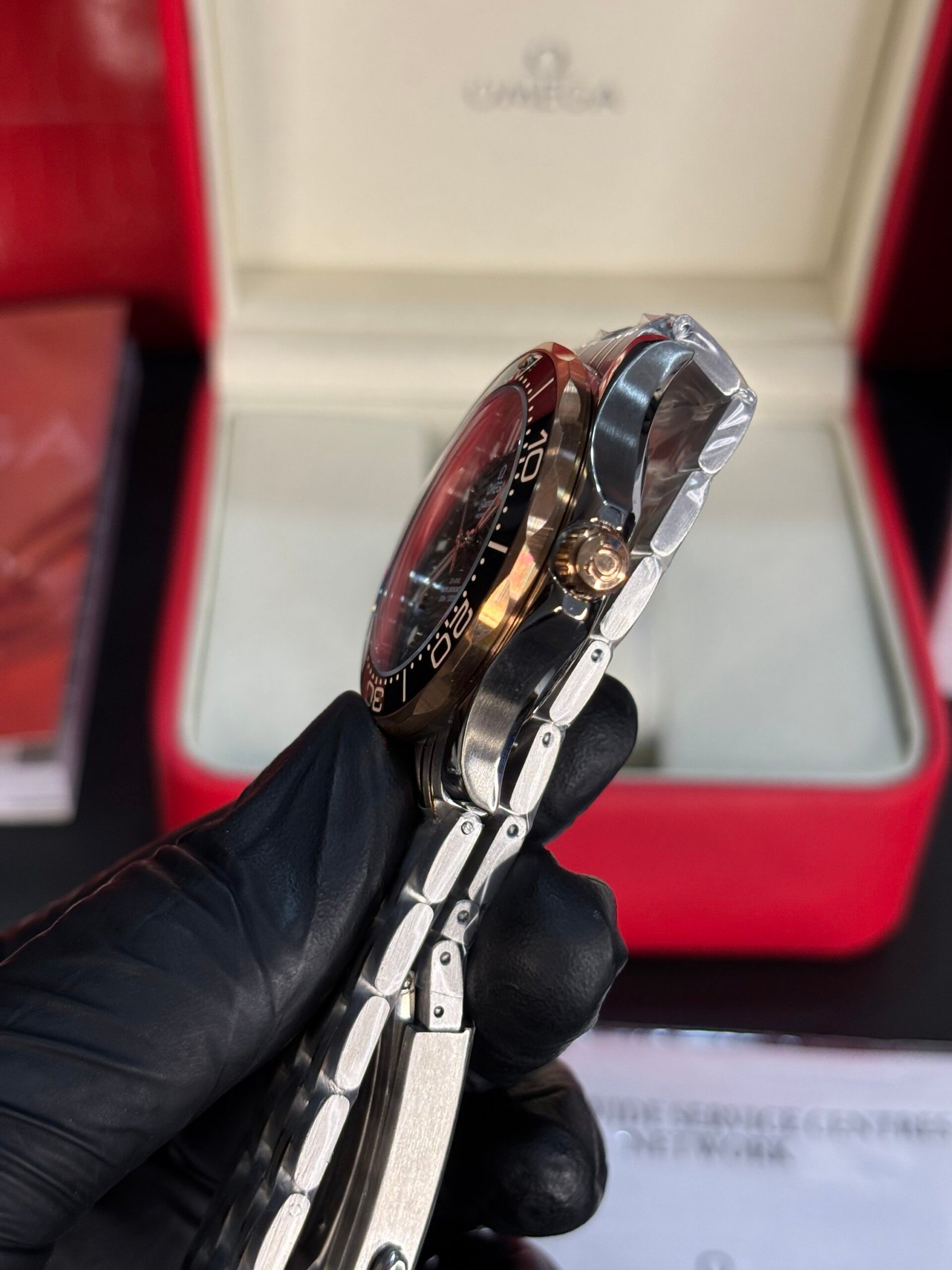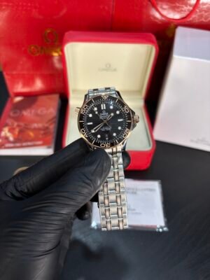 The Omega Seamaster Diver 300M Two-Tone Copper-Black embodies a perfect balance of sport and sophistication, combining professional-grade performance with luxury appeal. This striking timepiece features a robust stainless steel and 18K Sedna™ gold construction—Omega’s proprietary rose gold alloy—delivering a rich, copper-toned warmth that contrasts beautifully with the deep black ceramic dial and bezel.