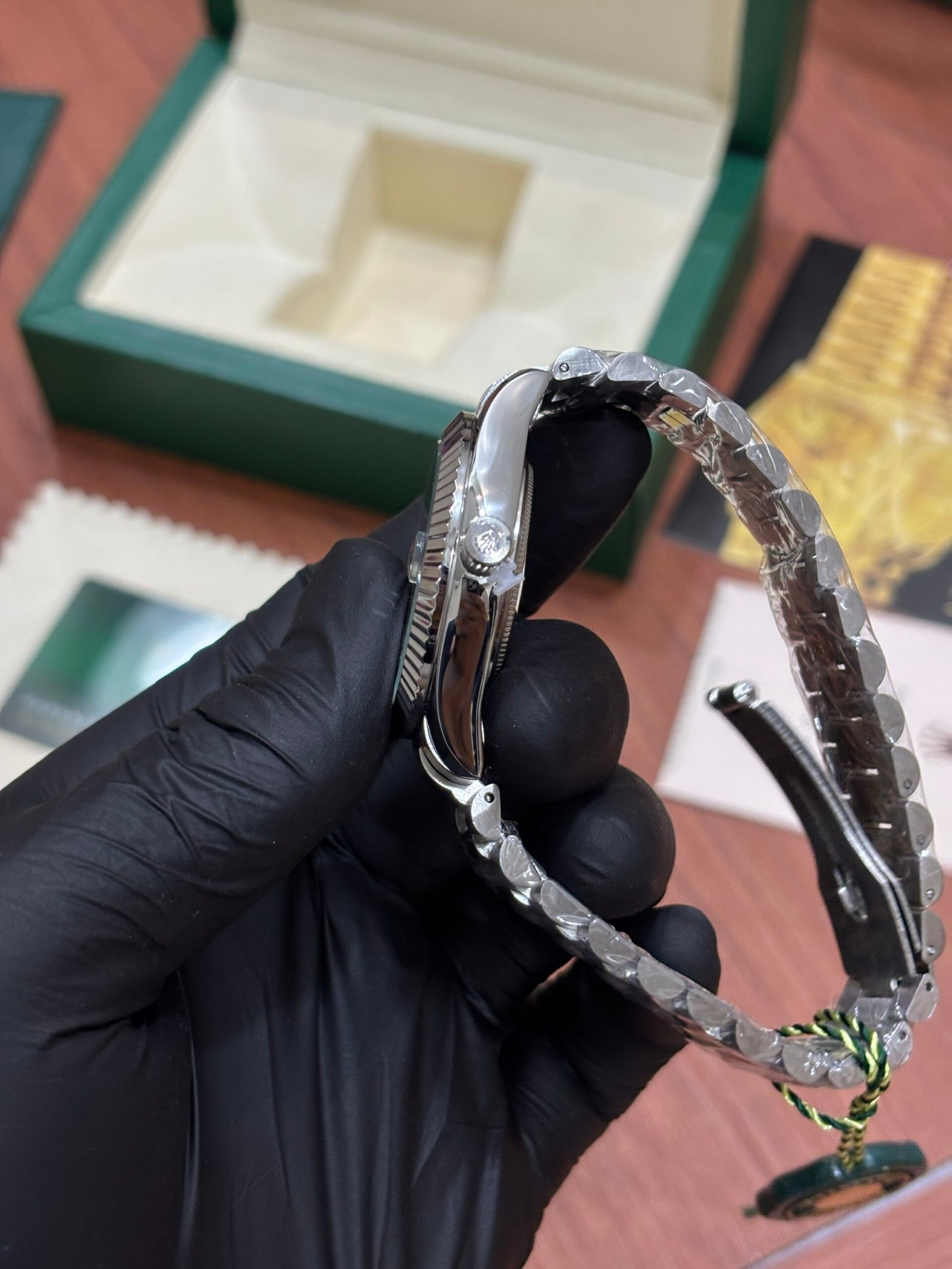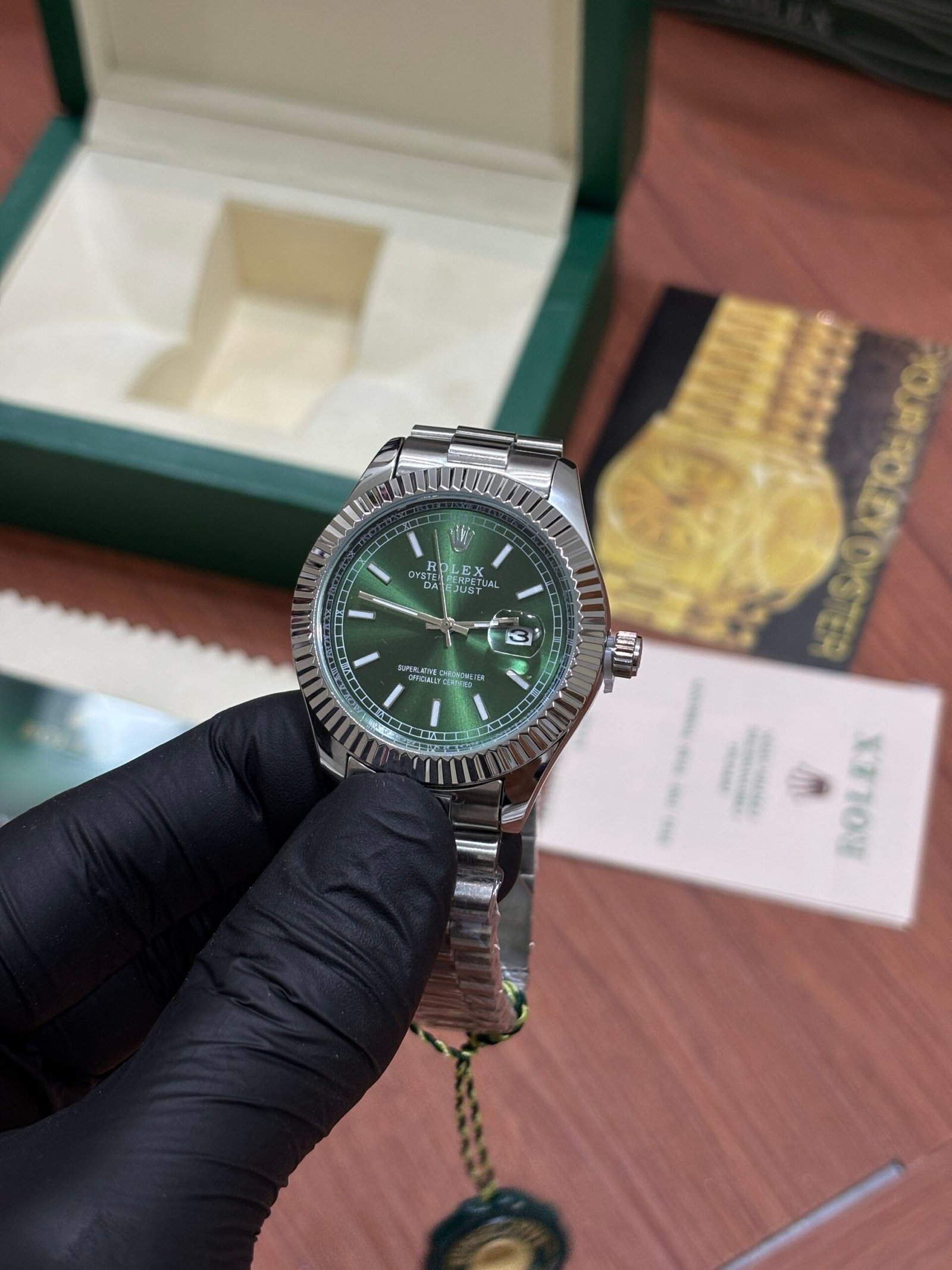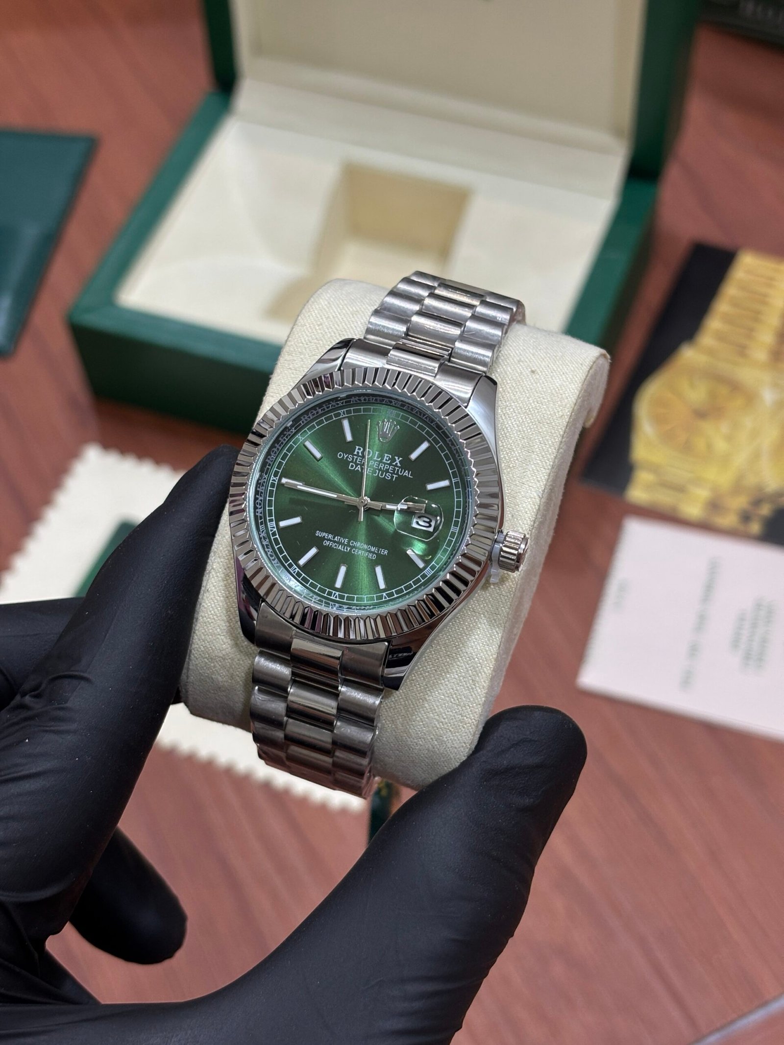 ROLEX OYSTER PERPETUAL DATE JUST SILVER GREEN DIAL